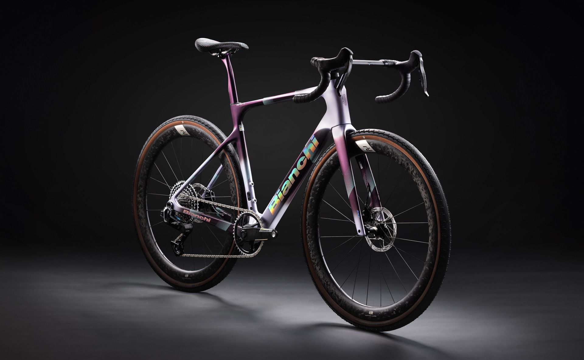Bianchi Infinito Pro, Flat mount 140/160, PressFit 86.5x41 mm, Thru Axle 12x142 mm, Sram UDH compatible, Max chainring compatibility: 46-54T, Internal cable routing, Tire clearance: ETRTO 622-40 sizes 53-55-57